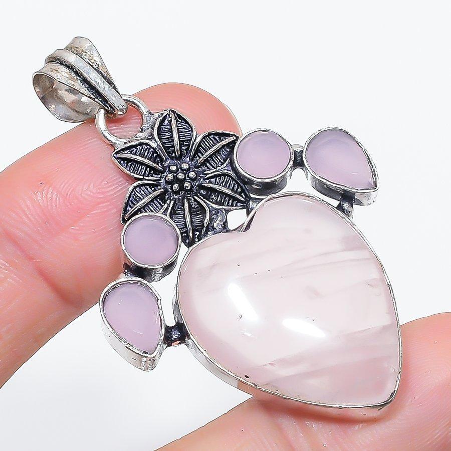 Натуральный розовый кварц, халцедон 925 стерлинговое серебро ювелирная подвеска 2.21"