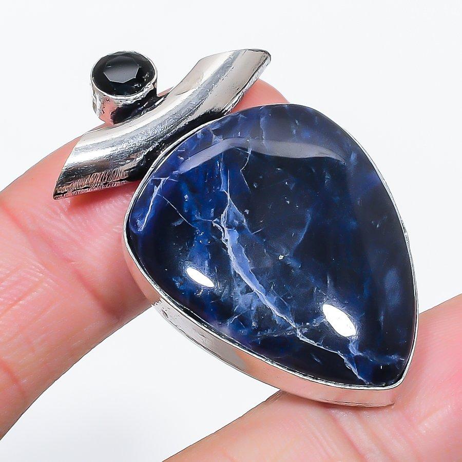 Натуральный содалит, драгоценный камень шпинель, ювелирное изделие из стерлингового серебра 925 пробы, кулон 1,81"