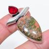 Натуральный унакит, гранат драгоценный камень серебро 925 пробы ювелирная подвеска 2,01"