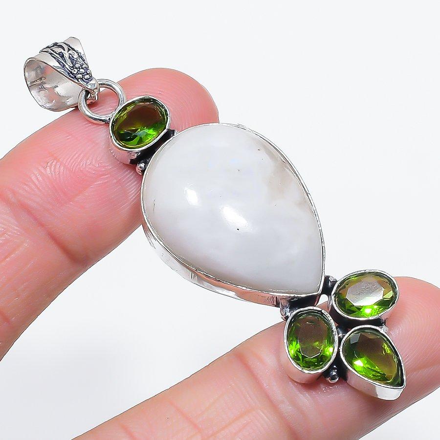 Натуральный лунный камень, перидот, ювелирная подвеска из стерлингового серебра 925 пробы, 2,64"