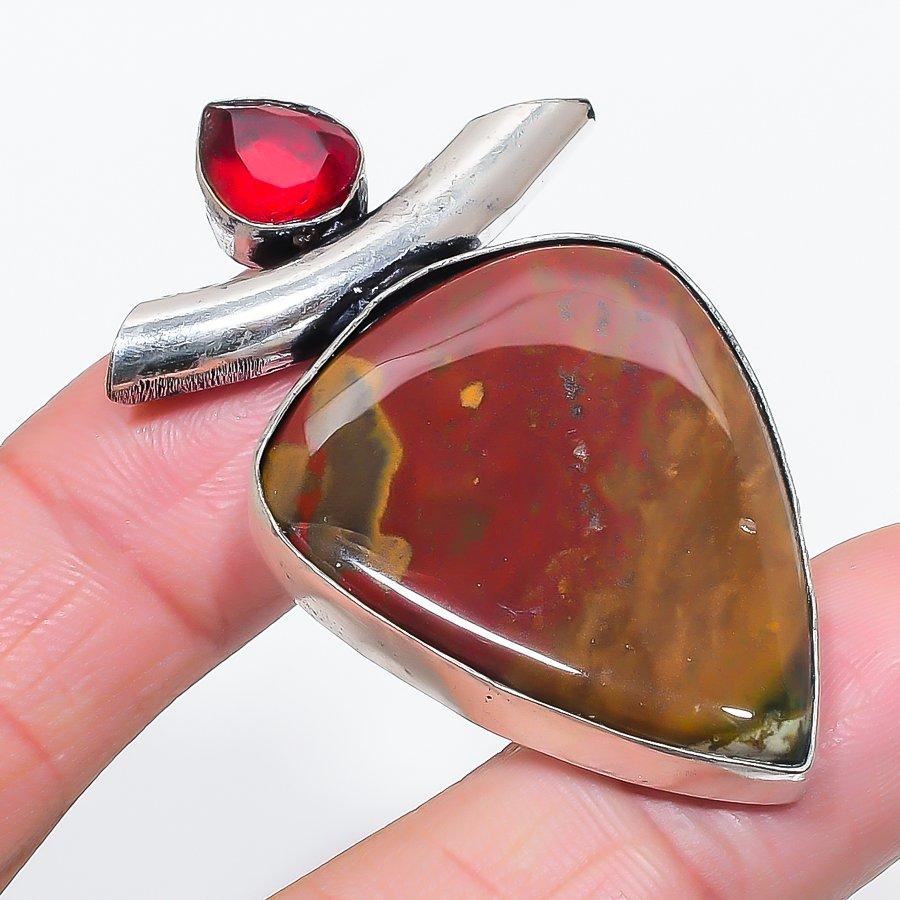 Натуральный Гелиотроп, Гранат Серебро 925 пробы Ювелирная подвеска 2,25"