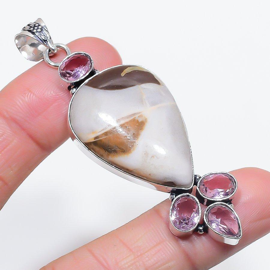 Натуральный агат в горошек, кунцит, ювелирная подвеска из стерлингового серебра 925 пробы 2,84" k4M31 — купить товар онлайн с бесплатной доставкой до всему миру!