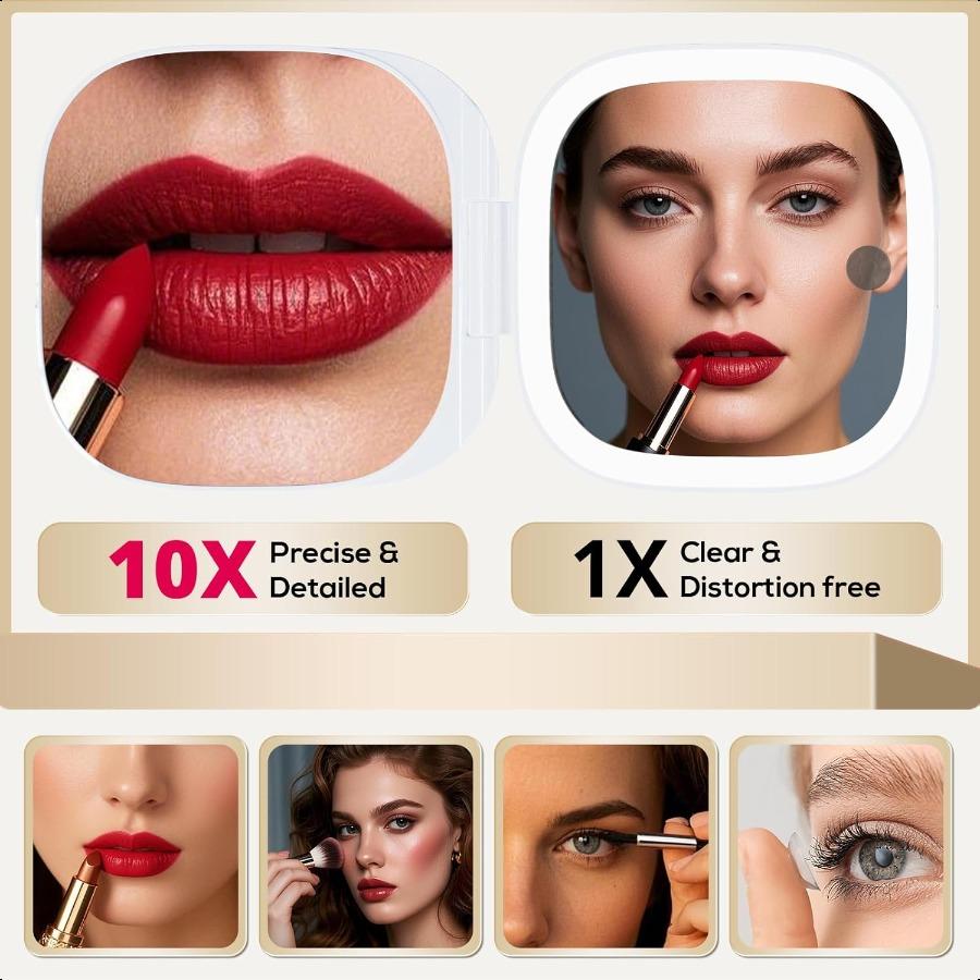 Регулируемая яркость Компактное зеркало с подсветкой Дорожное зеркало с 1-кратным 10-кратным увеличением Двустороннее Мини Диммируемое Портативное для сумочки