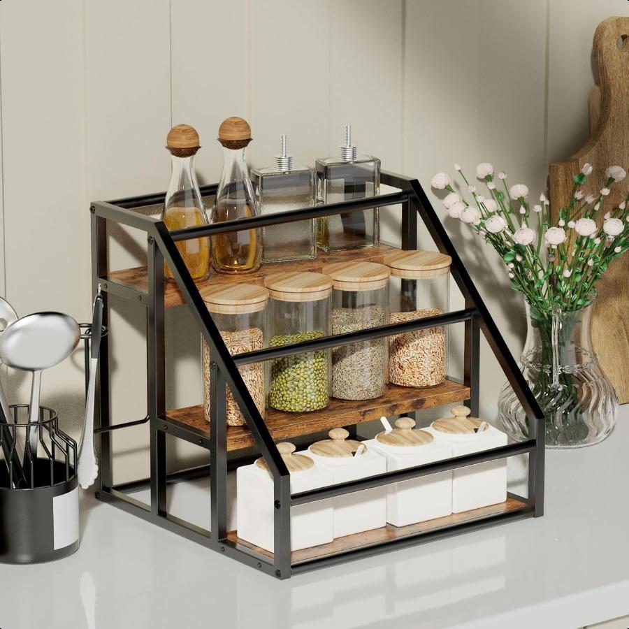 Органайзер для специй 3-ярусные настольные полки для хранения Кухонное хранение Подставка-держатель для бутылок с сиропом для вина, ликера, кухни, кофе
