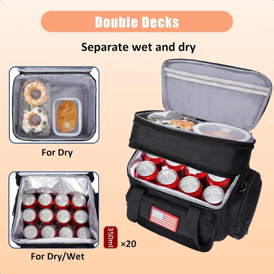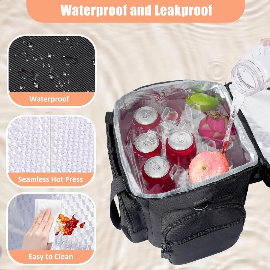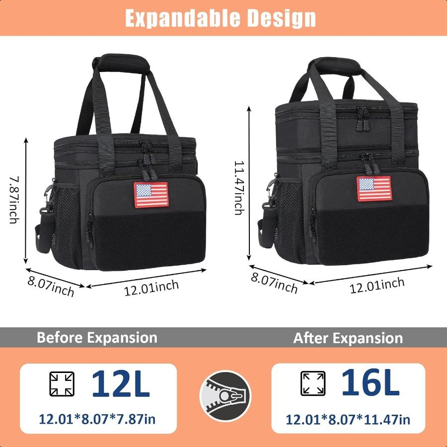 Сумка для ланча Ланч-бокс для женщин мужчин Изолированная сумка для ланча Большая расширяемая Непротекаемая сумка-холодильник Черная 16 л