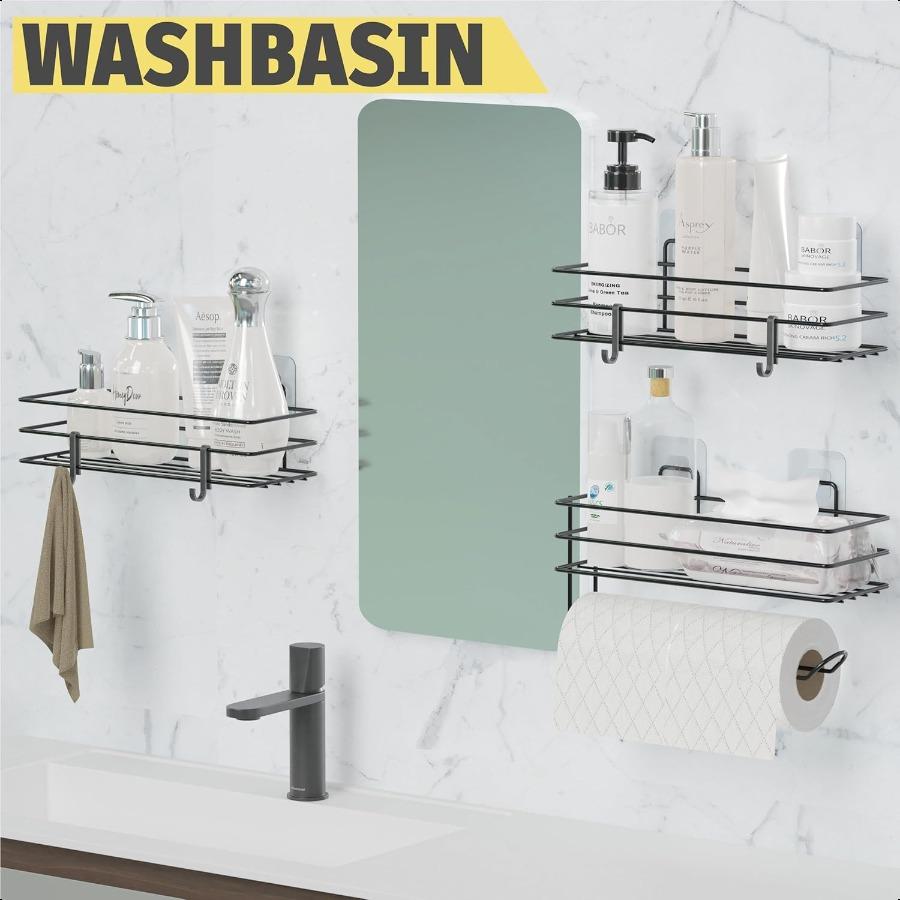Самоклеящаяся душевая полка 3 шт. Органайзер для душевых полок для хранения в ванной комнате Органайзеры для ванной Полка для специй для кухни Самоклеящаяся или С