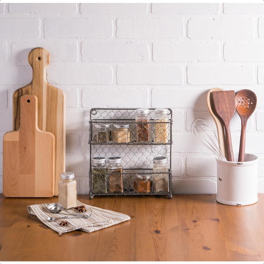 Винтажный декоративный металлический органайзер для специй для кладовой в стиле фермерского дома 9,45Дx2,3Шx10В 2-ярусная полка для специй в деревенском стиле — купить товар онлайн с бесплатной доставкой по всему миру!