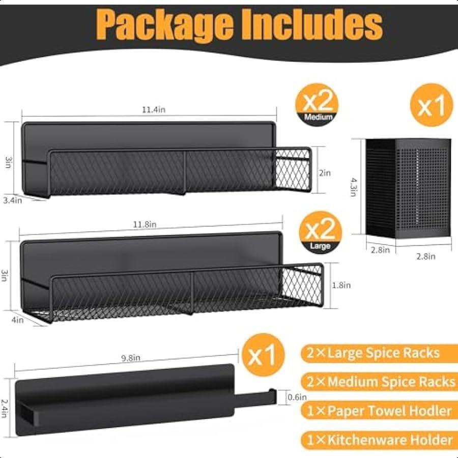 Магнитная полка для специй для холодильника 6 шт. Металлическая магнитная полка Черная Передвижной органайзер для специй Сильное магнитное хранение Холодильник