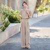 Костюм в стиле «королевская сестра», модный, женский, новый дизайн, рубашка с коротким рукавом, драпированные брюки широкого кроя, комплект из двух предметов, трендовый