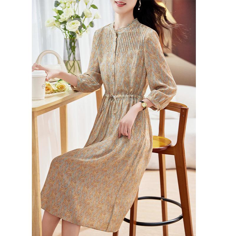 Шелковое платье модный принт ретро рукав три четверти средней длины платье из тутового шелка
