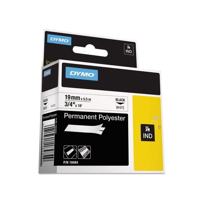 DYMO Rhino - Самоклеящиеся промышленные этикетки из полиэстера, 12 мм x 5,5 м, черные на металлике