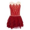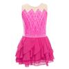 Платье для фигурного катания для девочек, круглый вырез, без рукавов, блестящие стразы, многоярусная юбка с оборками, танцевальный костюм для соревнований