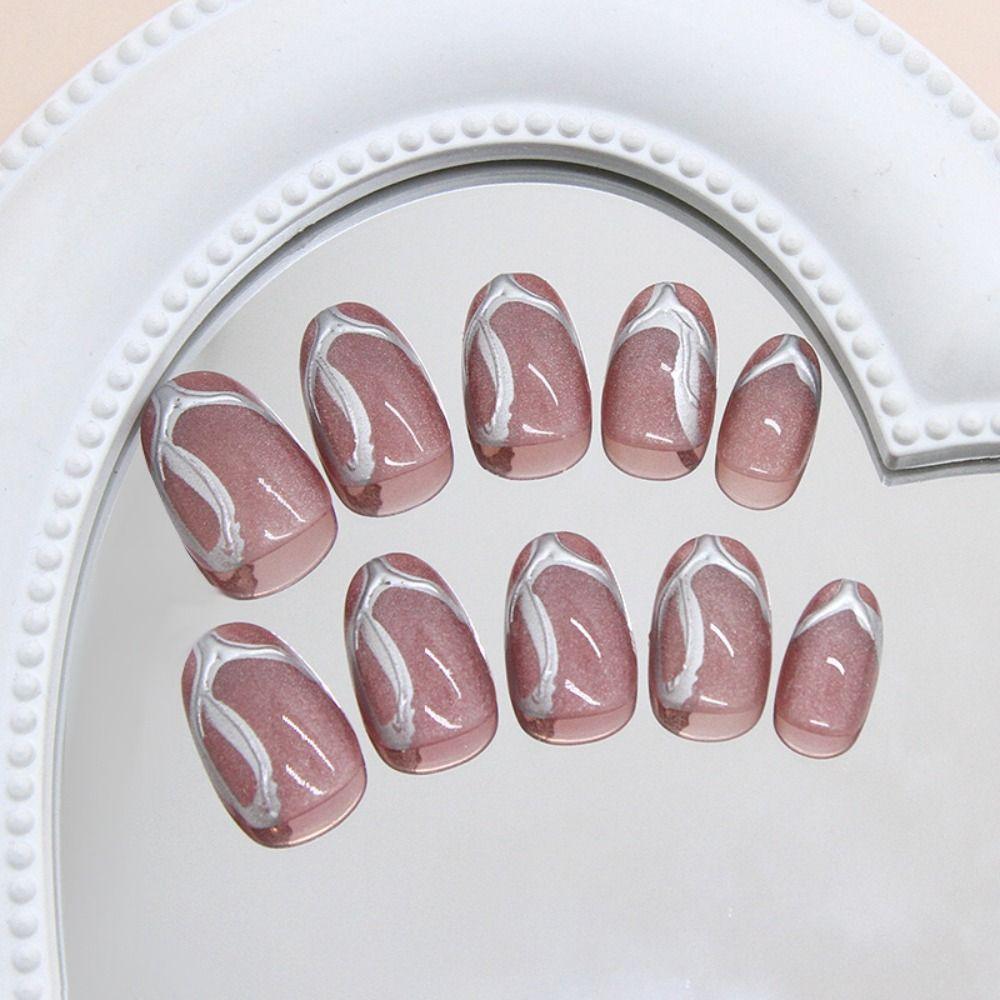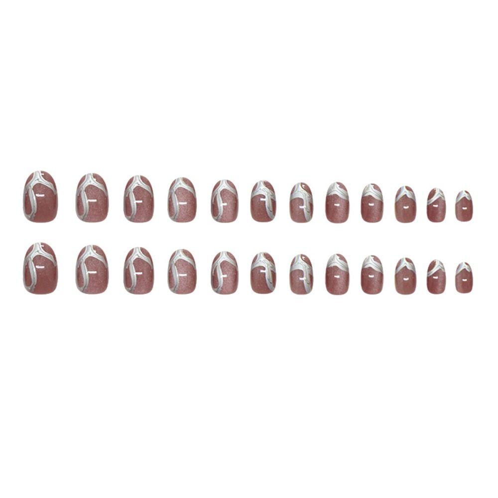 24 шт. Французские накладные ногти Короткие овальные Накладные ногти Маникюр Искусственные ногти Женские