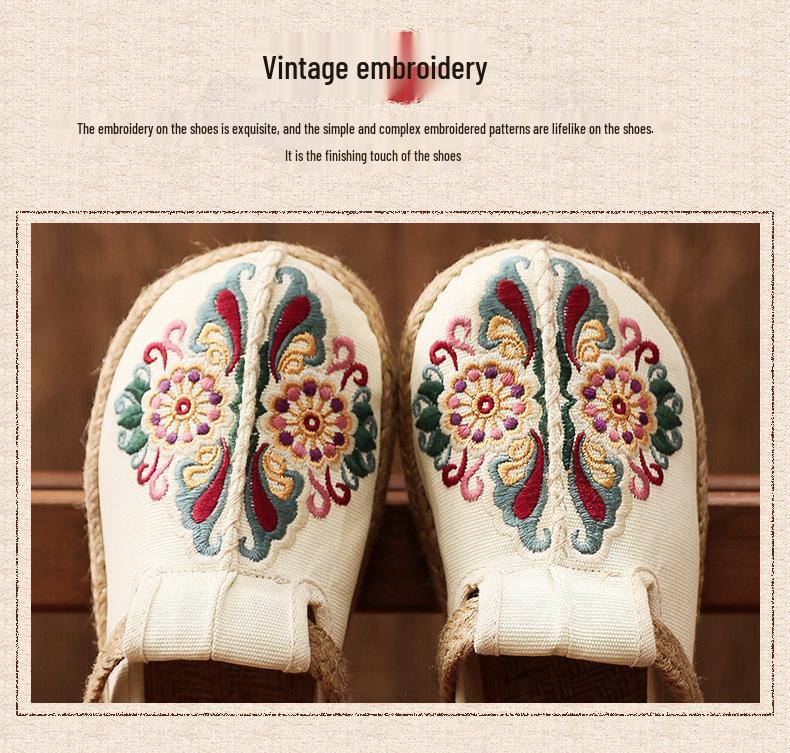 Женские льняные балетки в этническом стиле с вышивкой - Весна/Лето