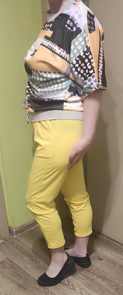 На свой рост 158см, размер 92-82-102 сел нормально. Брюки очень тонкий синтетический трикотаж, просвечивают и сильно обтягивают, много швов, а вот кофта выглядит не плохо, только нитки кое где торчат, но это поправимо, обрезала. Цвет очень отличается от картинки. Я бы не советовала.