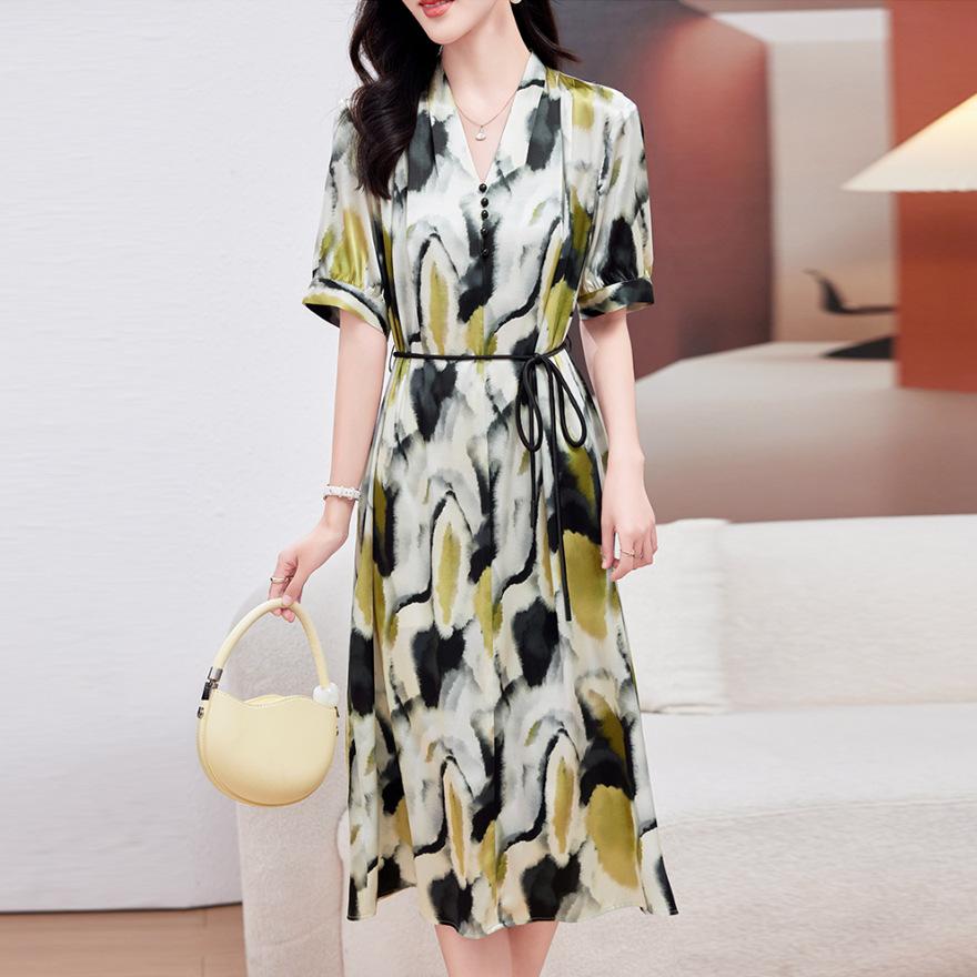 Дизайнерское платье из принтованного шелка, летнее, новое, темпераментное, из мятого тутового шелка, средней длины