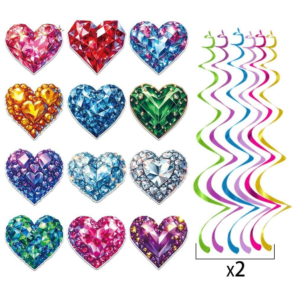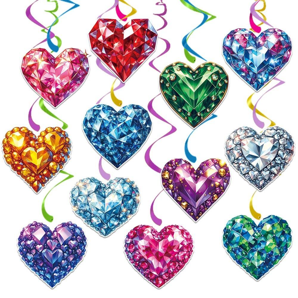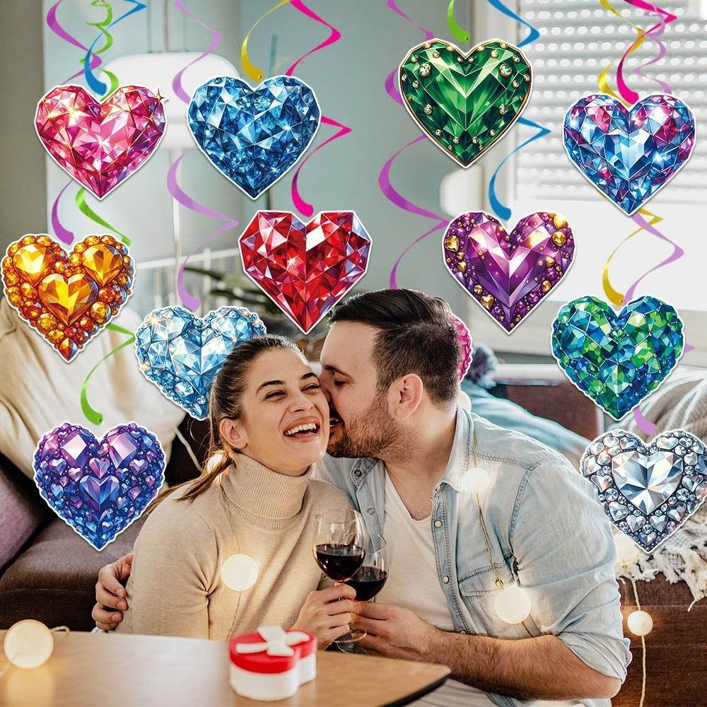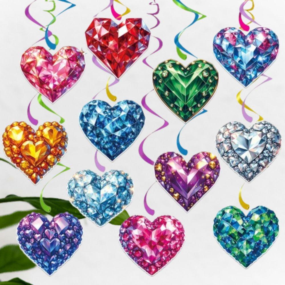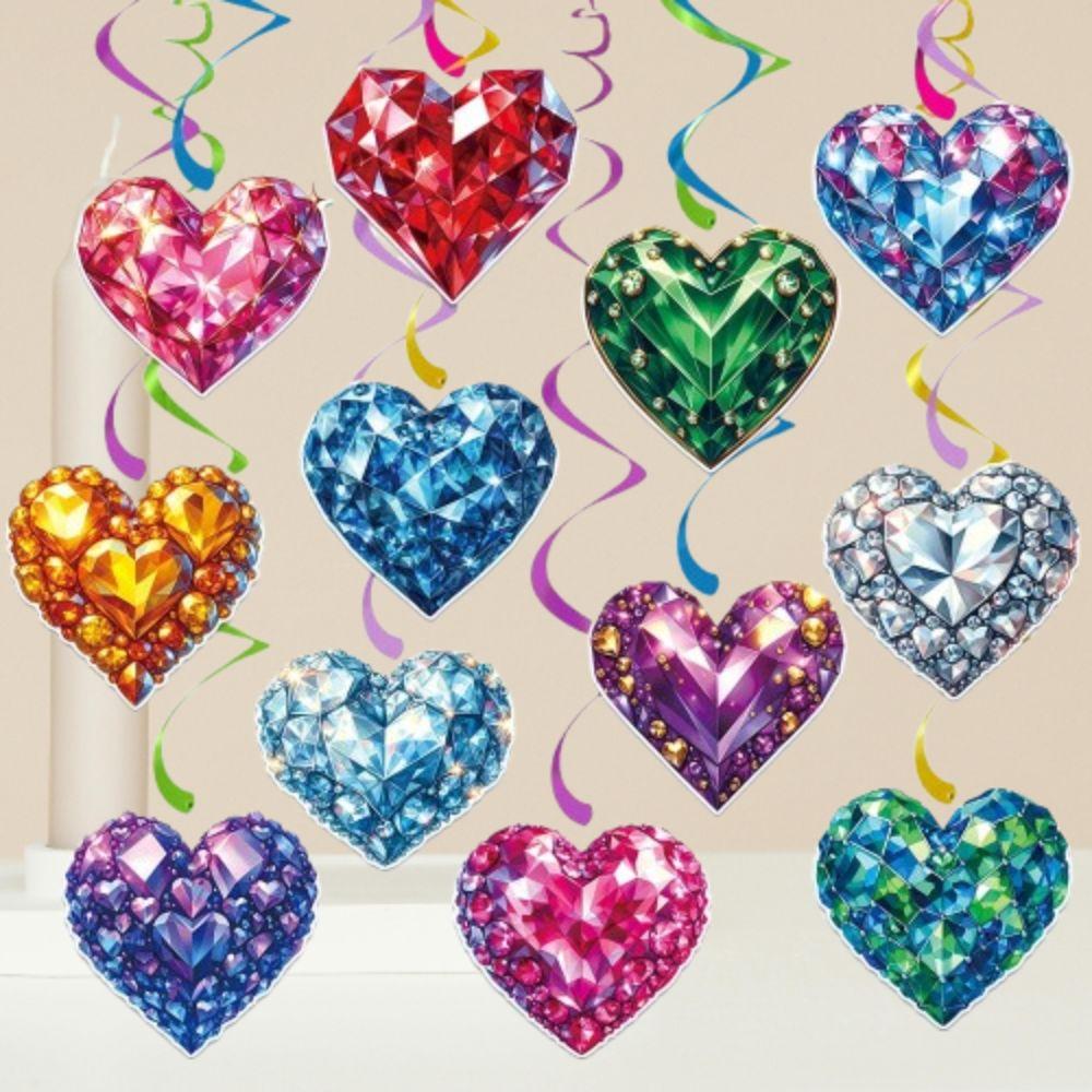 12 шт. Блестящие сердечки на День святого Валентина, подвески-завитки, разноцветные сердечки, потолочный декор, сувениры для вечеринки