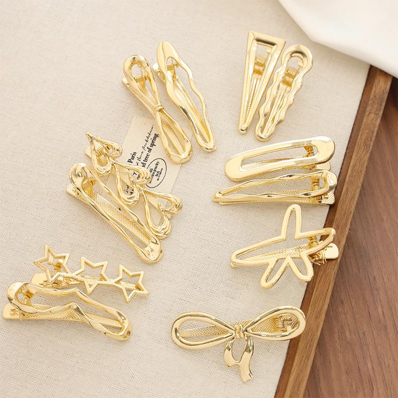 Изысканные Металлические Полые Заколки для Волос Золотого и Серебряного Цвета Сладкие Крутые Заколки для Челки Заколки-Уточки для Лба и Выбивающихся Волос Шпильки Стильные Головные Уборы