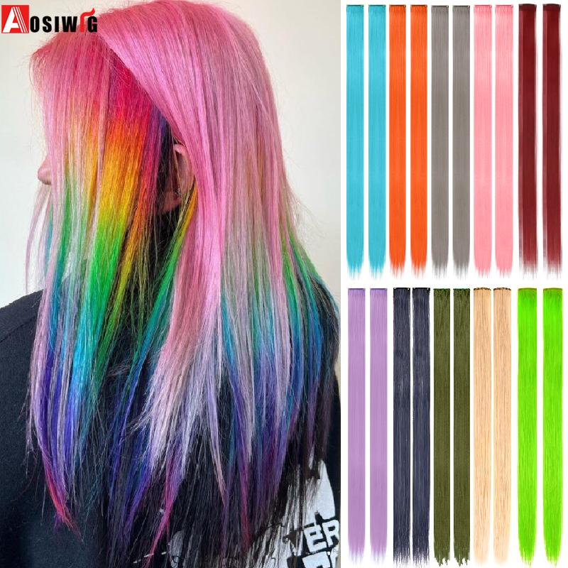 Aosiwig 2 шт. Накладные волосы на заколках, цветные пряди для вечеринки, прямые радужные накладки для волос, фестиваль, Хэллоуин, косплей для женщин, девушек — купить товар онлайн с бесплатной доставкой по всему миру!