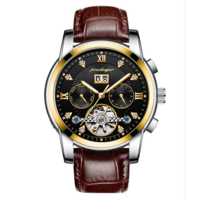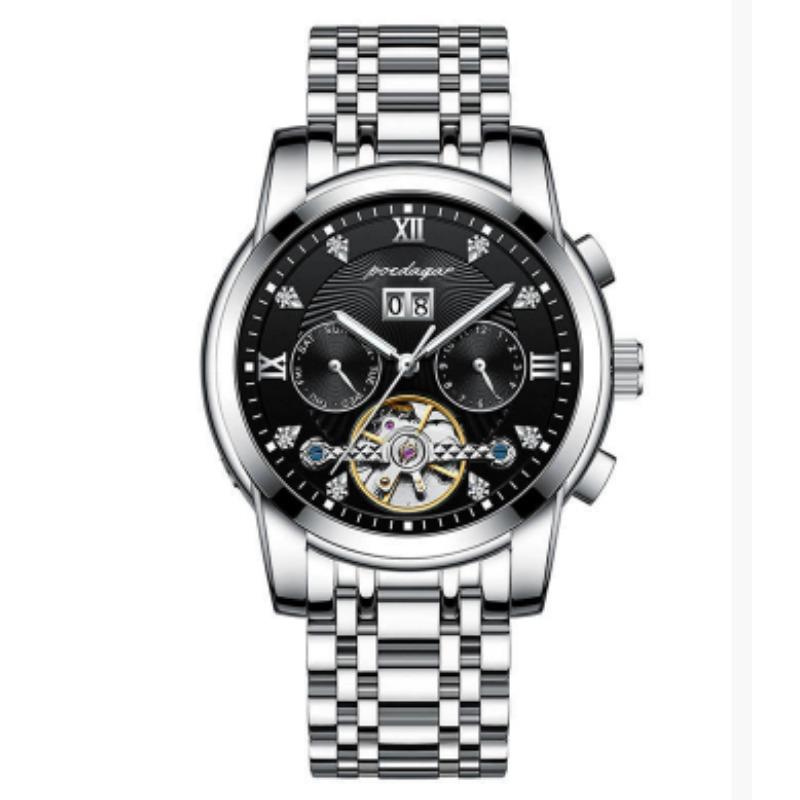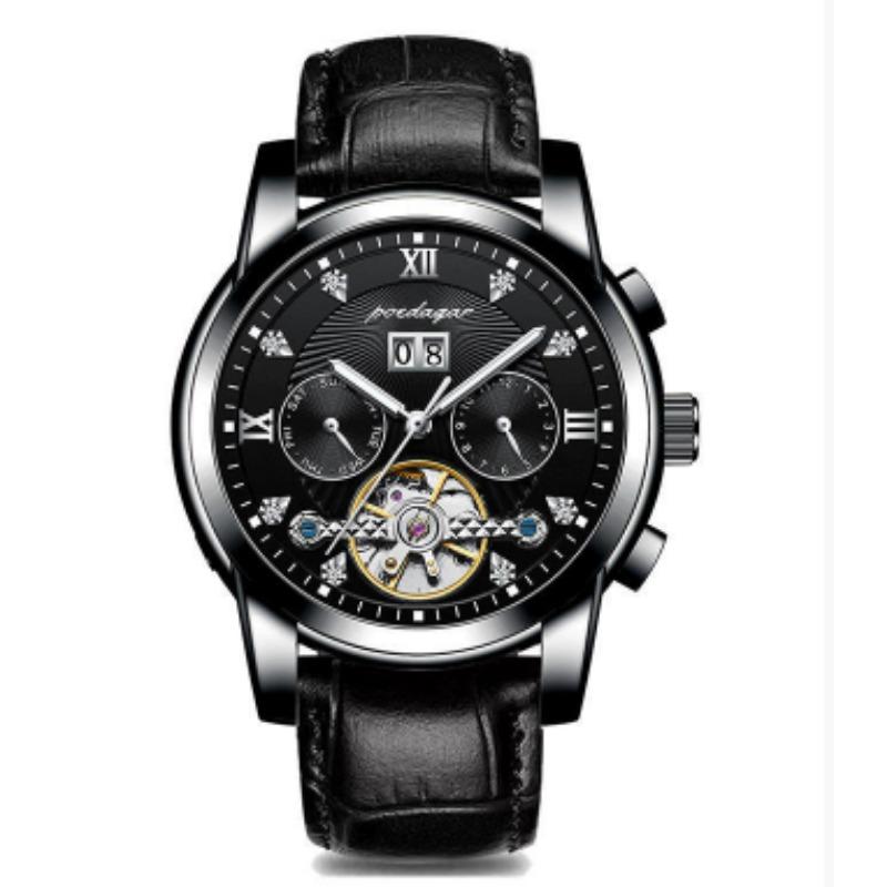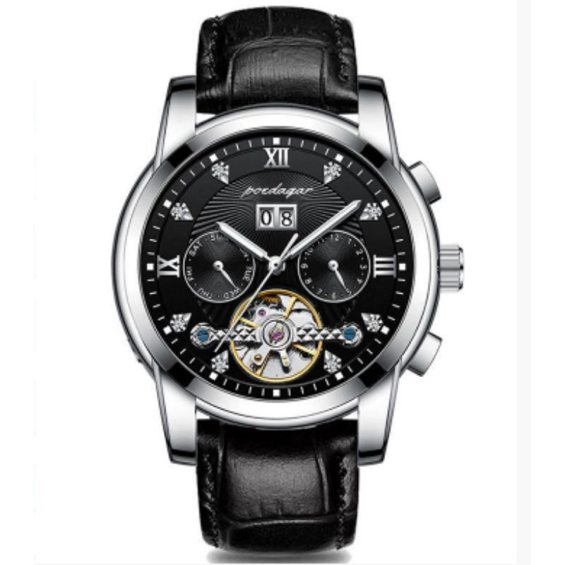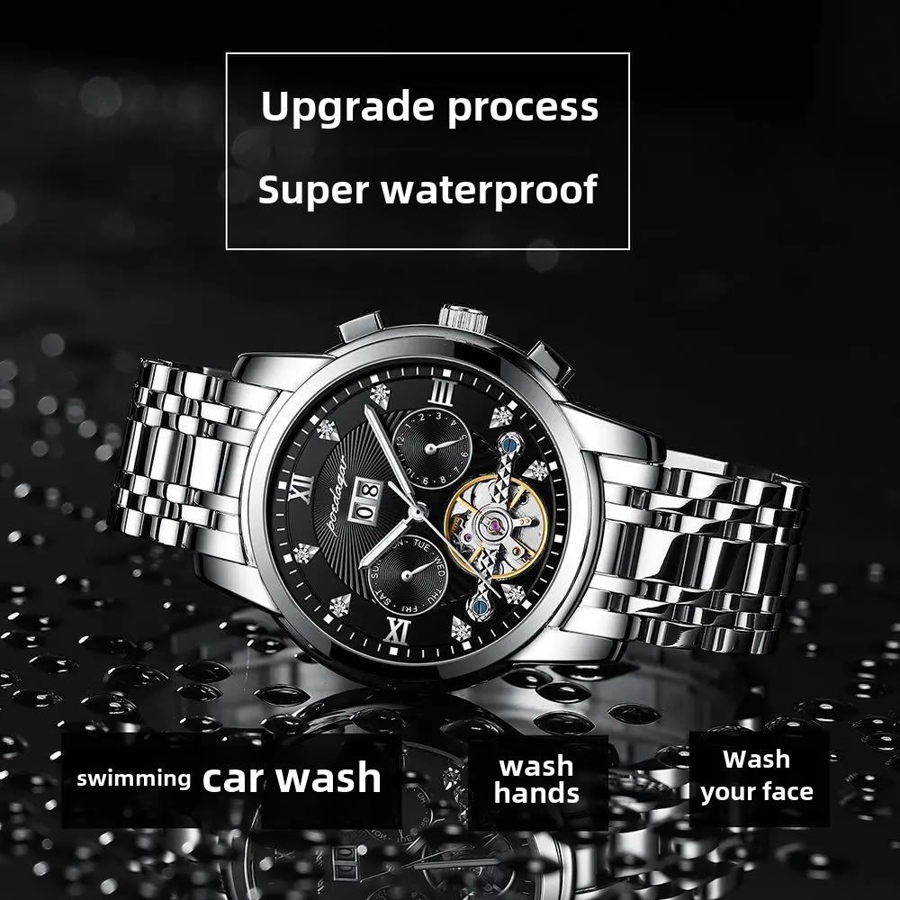 Новые мужские автоматические механические часы Водонепроницаемые Люминесцентные Календарь Часы с летающим колесом Деловой стиль без застежки