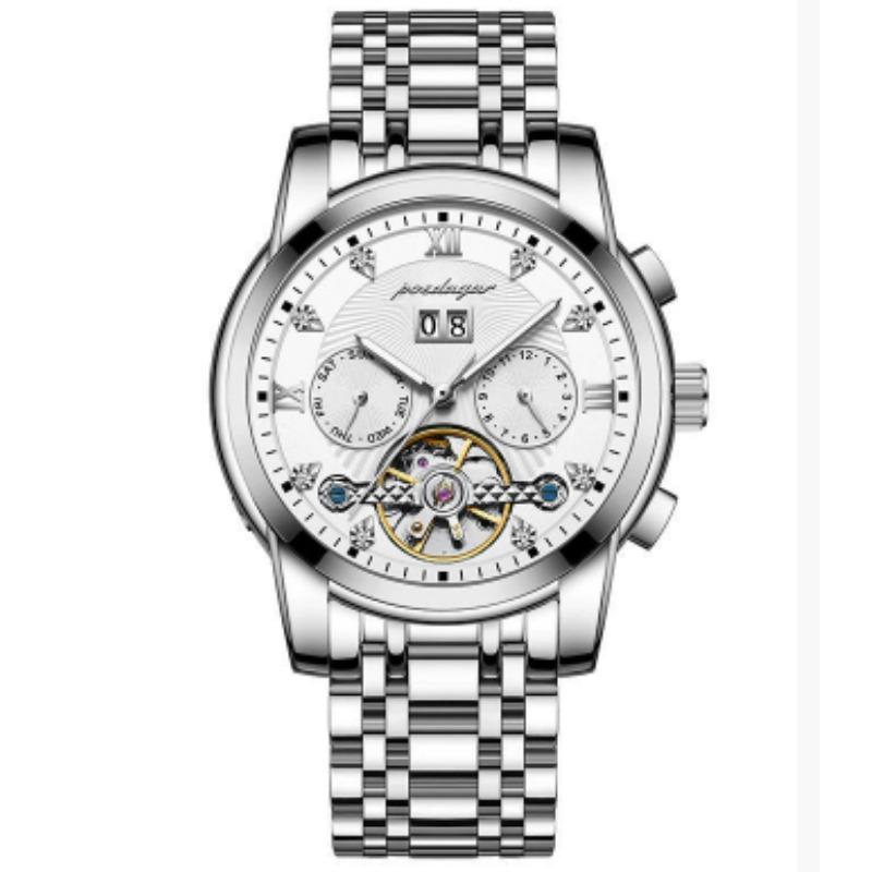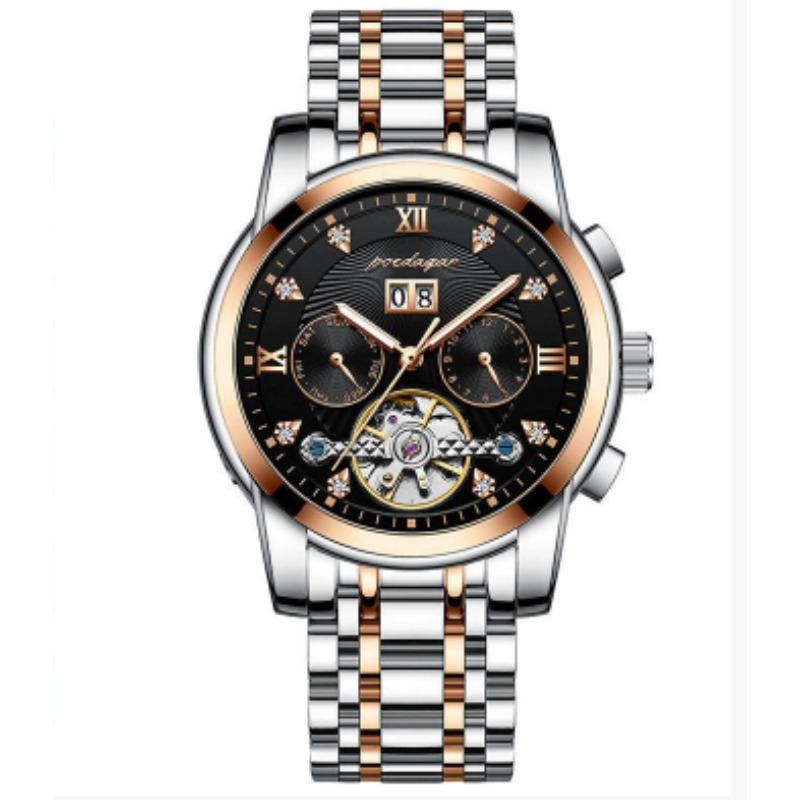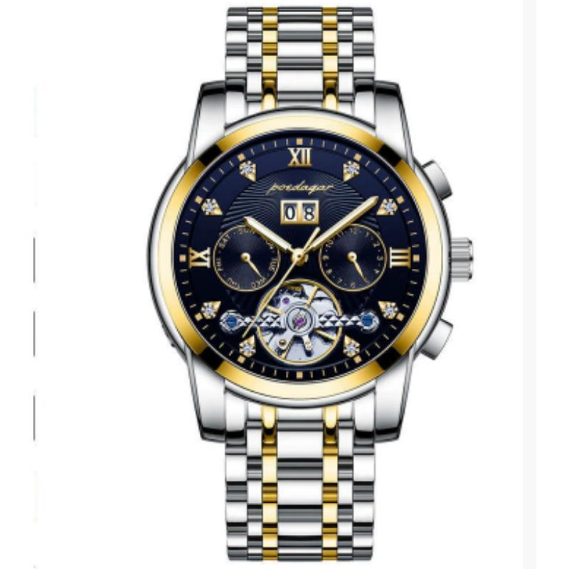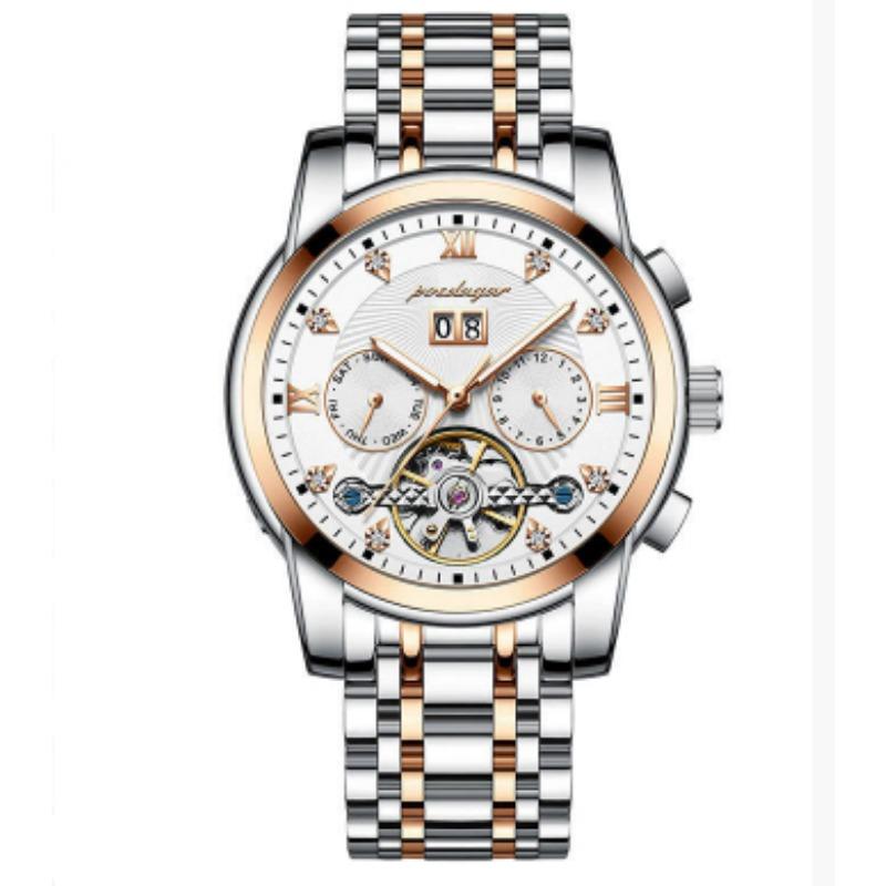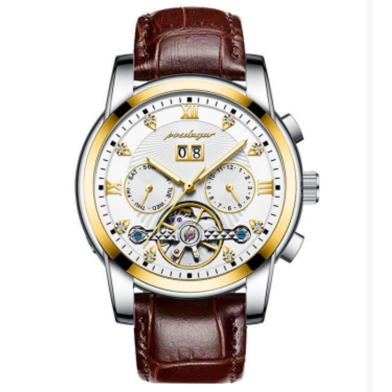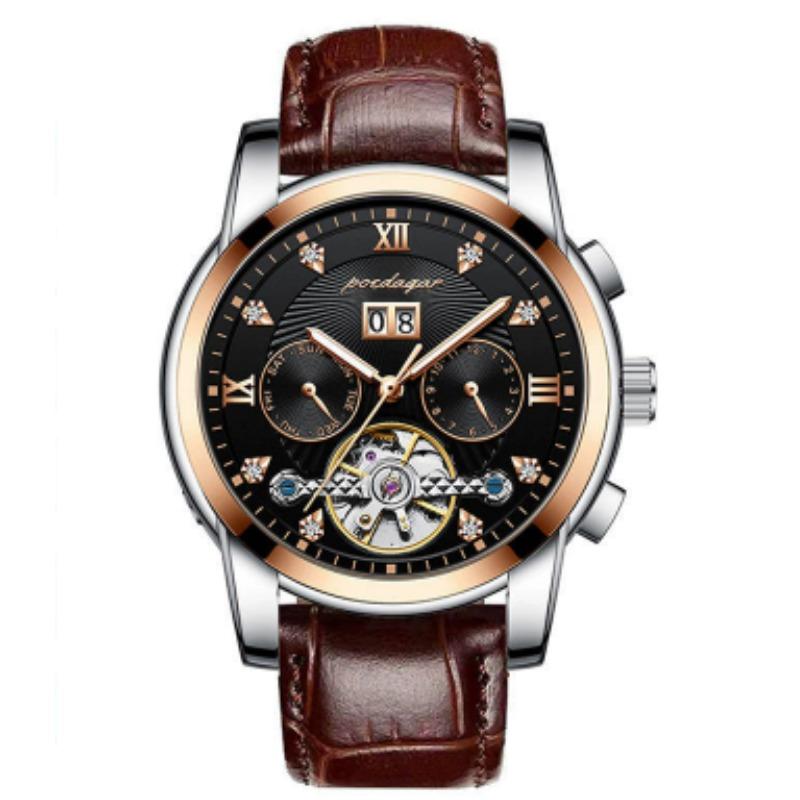 Новые мужские автоматические механические часы Водонепроницаемые Люминесцентные Календарь Часы с летающим колесом Деловой стиль без застежки