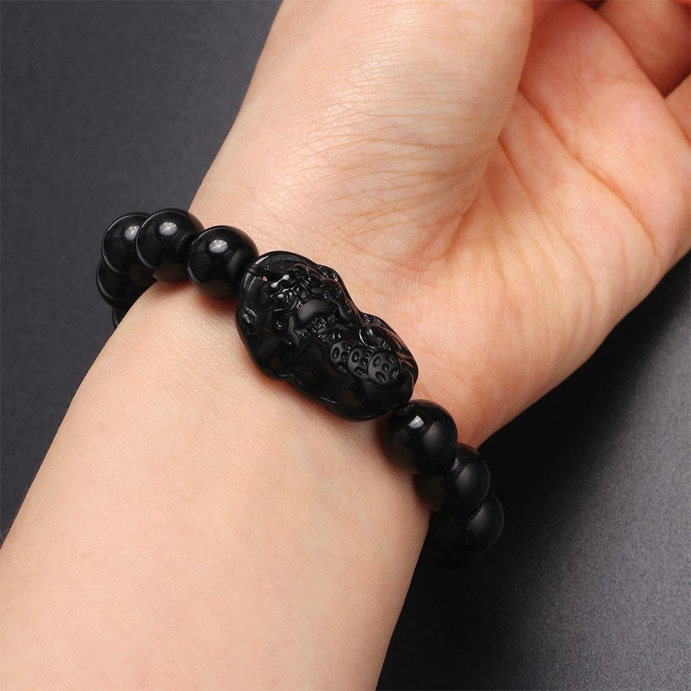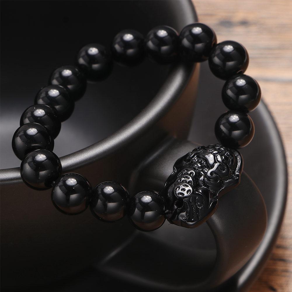 Модные украшения Мужские Пиксю Фэн-шуй Женские Браслеты из бусин из обсидиана Браслет-манжета на удачу