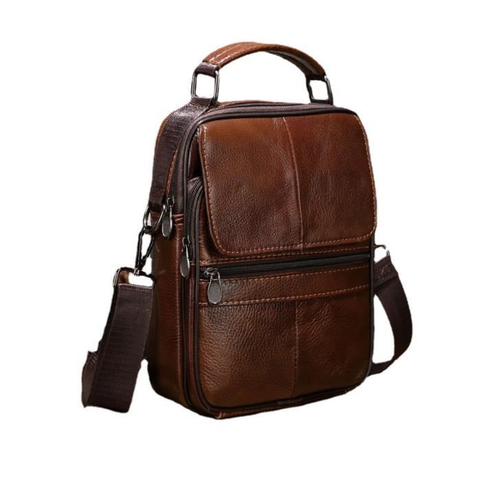 Sac à bandoulière en cuir pour hommes vintage casual business grande capacité (Marron)