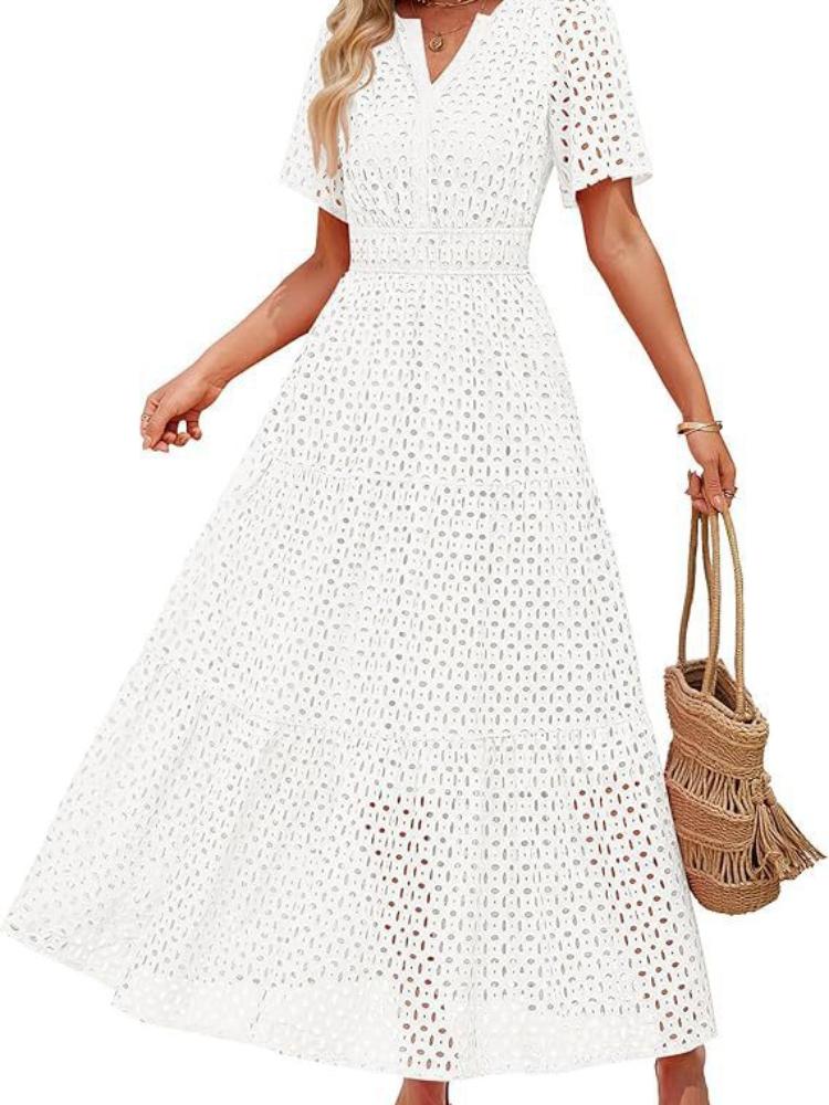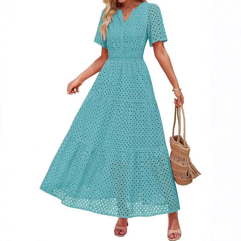 Женское платье макси с V-образным вырезом, кружевными короткими рукавами и расклешенным подолом, доступно в нескольких цветах