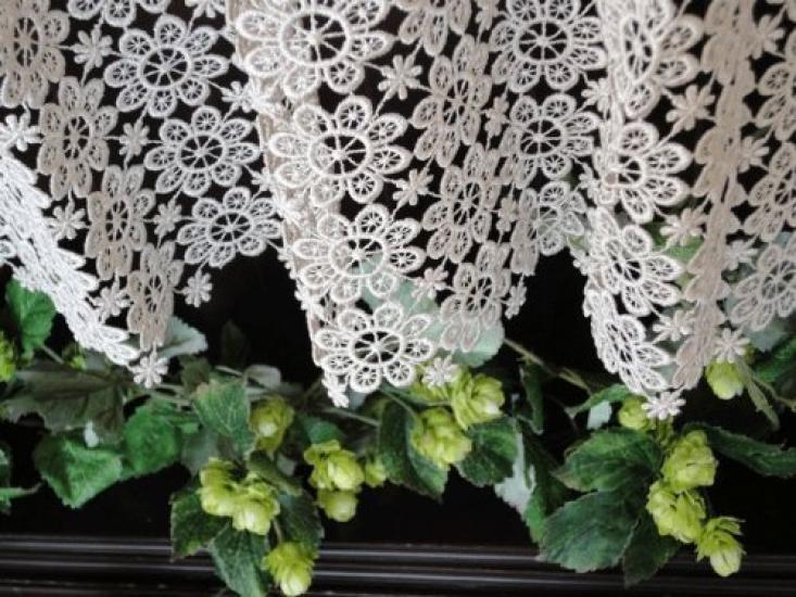 Слегка ретро кафе-занавеска из гипюрового кружева с множеством цветов [высотой 60 см], полудлинная (белый)