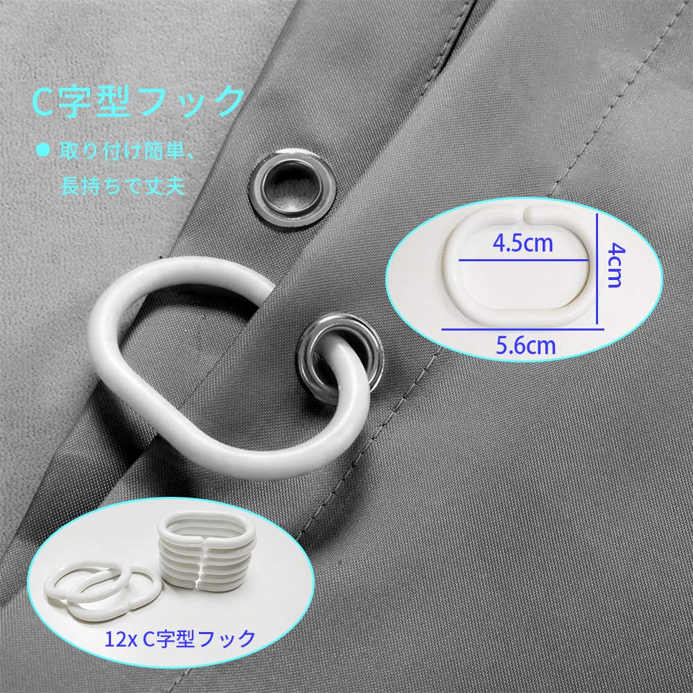 AooYo Душ 150 x Серый Однотонный для Скандинавской Легкой Комнаты Ванной Приватность Кольца Простой Дизайн Штора, 200см, Клетка, Водонепроницаемый, Устойчивый к Плесени,