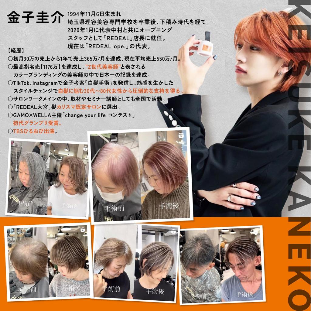 «Операция по удалению седины» — горячая тема! Под руководством харизматичного парикмахера. Техника «операции по седине» получила поддержку многих женщин, которых беспокоят осветленные и седые волосы.. Его разработчик, Кейсуке Канеко, — топ-парикмахер, который появлялся на TBS и других медиа-площадках, и «эксперт по уходу за седыми волосами» с ежемесячным оборотом в 11,76 миллиона иен. Этот фиолетовый шампунь был полностью разработан под руководством самого Канеко, отражая реальные отзывы тех, кто работает в этой сфере, и учитывая как «цвет», так и «текстуру волос».