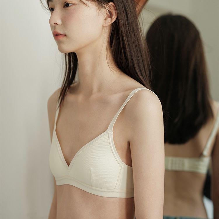 Сексуальный подростковый бюстгальтер во французском стиле, не оттопыривающийся, легкий, без косточек, пуш-ап, с треугольными чашками с цветовыми блоками