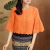 ZANZEA Женская повседневная блузка с круглым вырезом и рукавом 3/4 с вышивкой