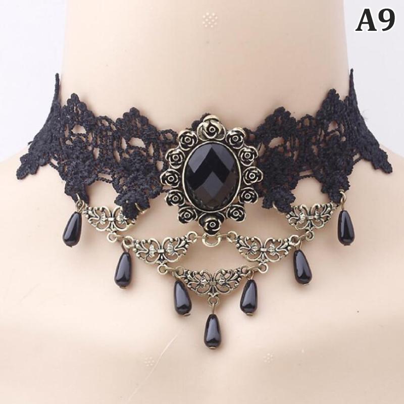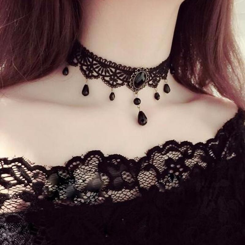 Сексуальные готические колье, черное кружевное ожерелье, винтажные викторианские украшения