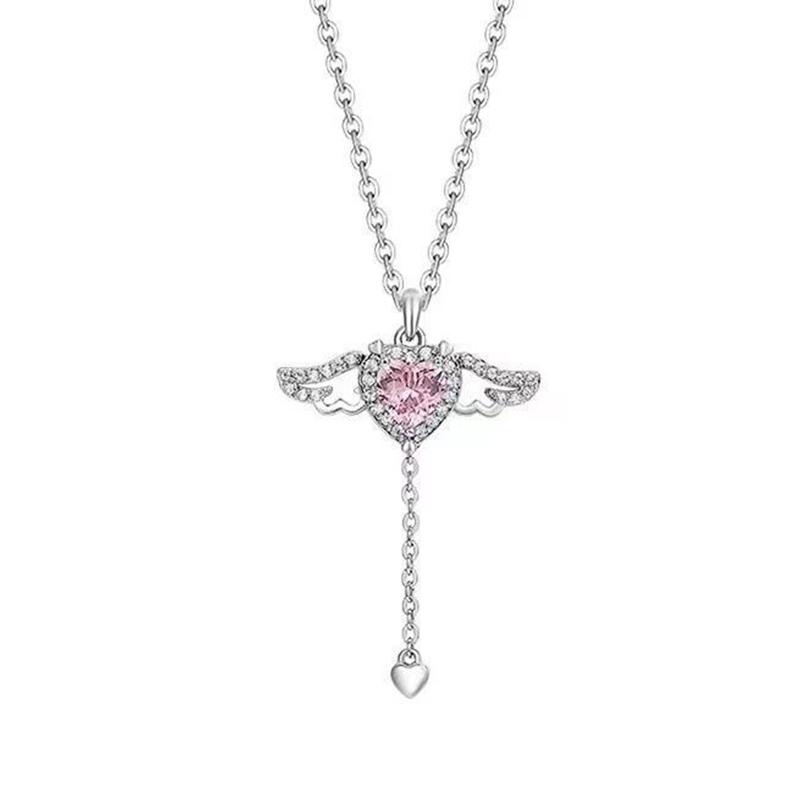Розовые Крылья Ангела Сердце Кулон Ожерелье Серьги с Бахромой Женские Ювелирные Изделия