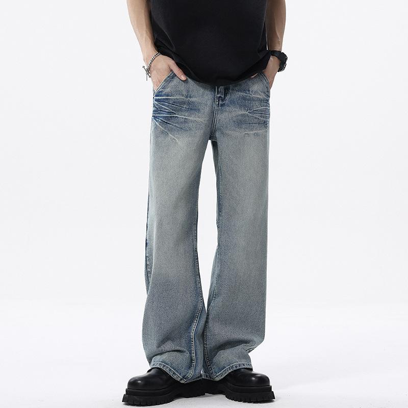 Бамбуковый узор Ретро Старые Выстиранные Нишевые Драпированные Прямые Джинсы Универсальные Напольные Брюки