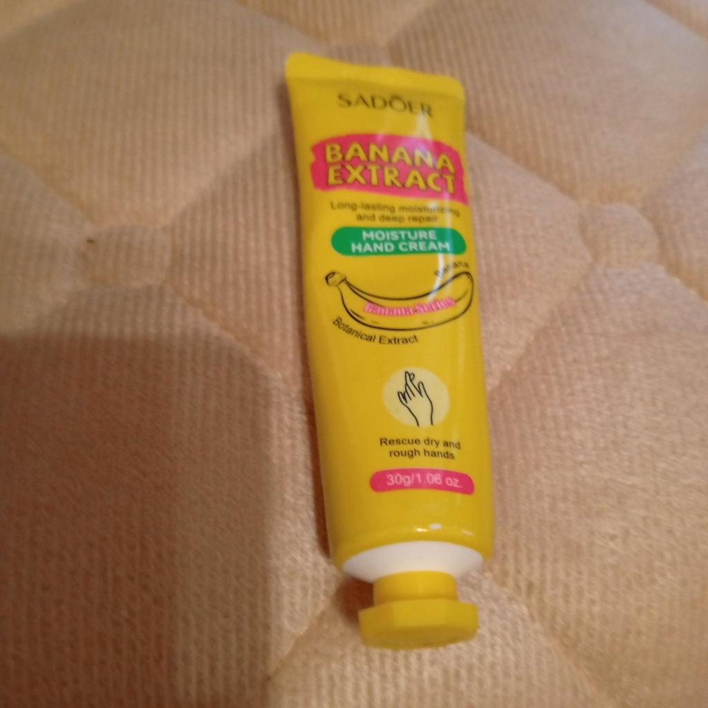 Крем очень хороший. Заказала первый раз буду заказывать ещё. Запах приятный, действительно пахнет бананом. Спасибо большое продавцу и Joom, за быструю доставку.