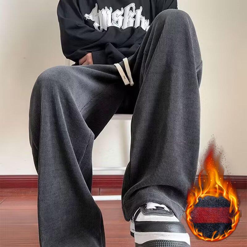 Повседневные брюки для мужчин на осень и зиму, новый стиль, гонконгский стиль, свободные, большого размера, прямые брюки, модные, простые, плюшевые, широкие брюки
