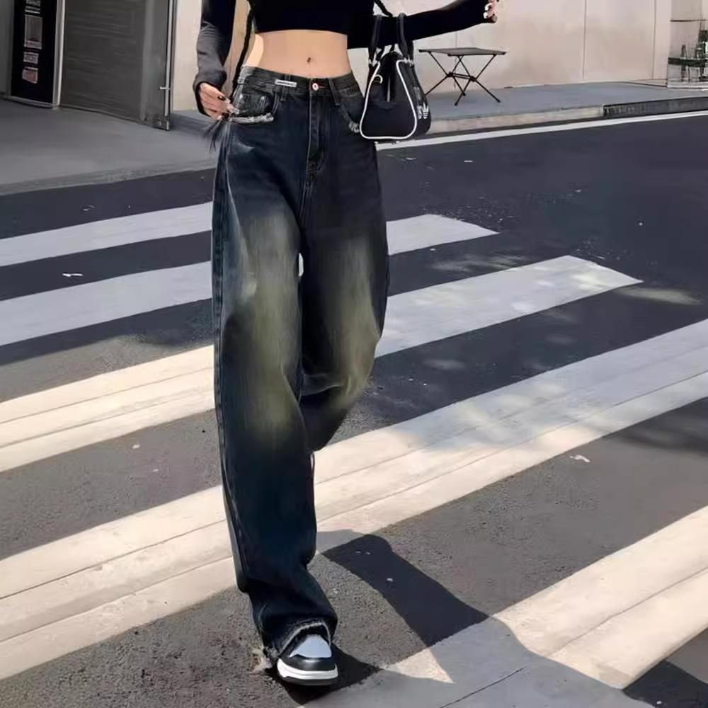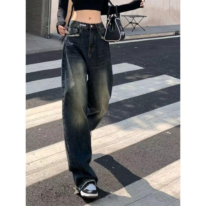 Джинсы с высокой посадкой и широкими штанинами для женщин, Новейшие, самые горячие, для полных, большого размера, стройнящие брюки, свободные прямые широкие брюки