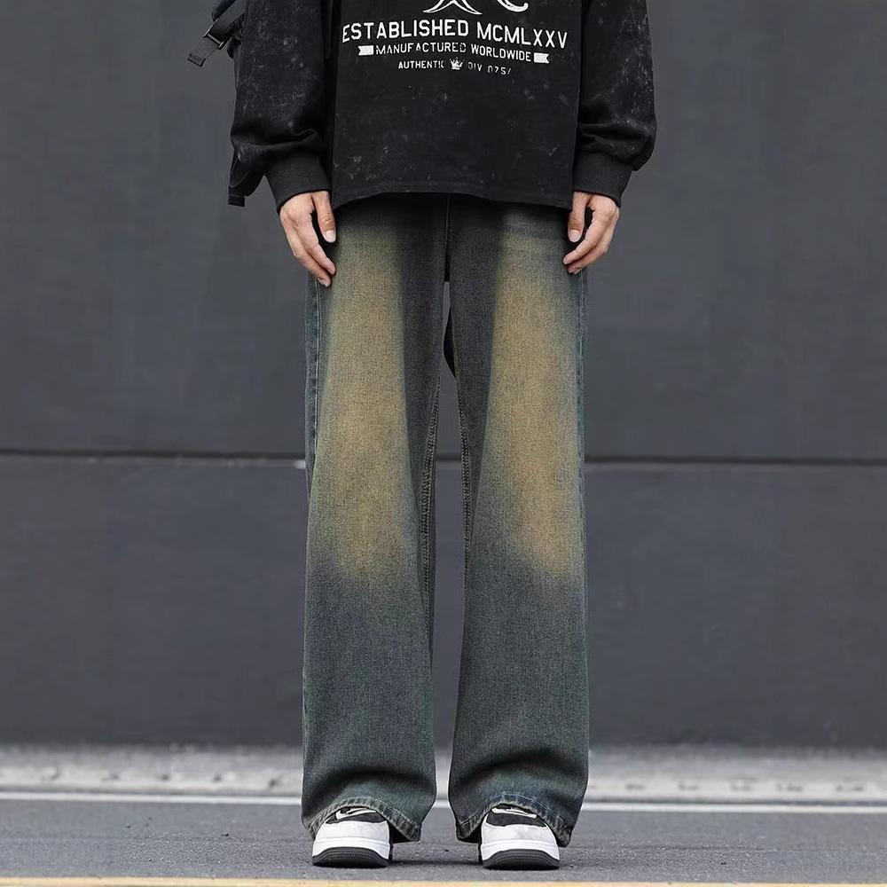 Весенне-осенние мужские свободные прямые джинсы, плотная песочная стирка, ретро, повседневные джинсы, брюки для мужчин