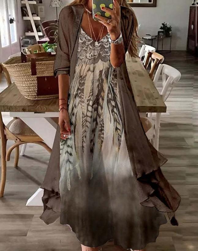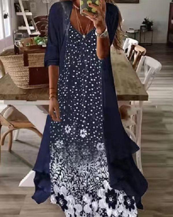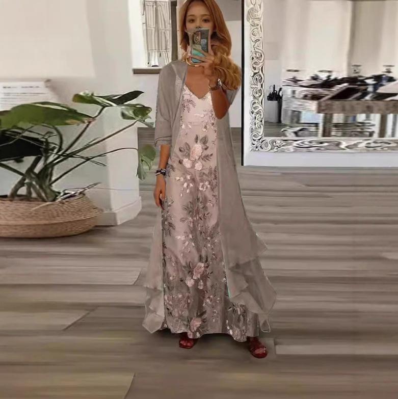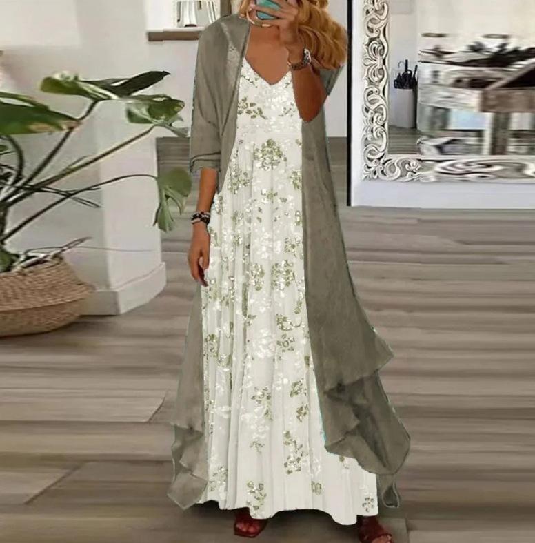 Женское бирюзовое кружевное платье макси с подходящим кардиганом для повседневной носки
