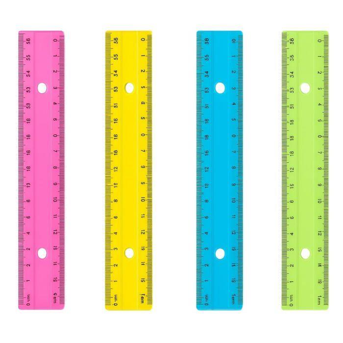 Набор из 4 разноцветных пластиковых линеек 30 см. Идеально подходит для школы и офиса.