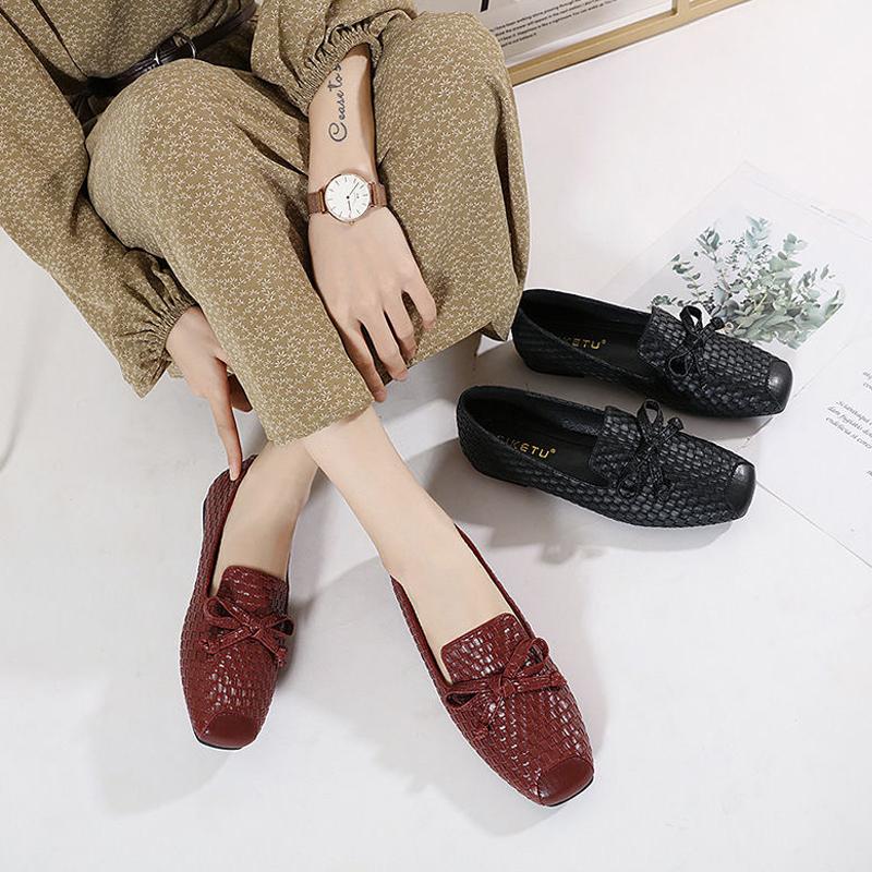 Весна Лето 2025 Обувь Женская Балетки Модный Бренд Элегантные Женские Туфли Одинарные Слипоны Мягкие Черные Красные Большой Размер 42 D355