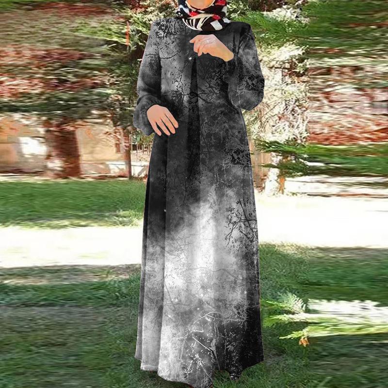 Мусульманская одежда, повседневное вечернее платье, элегантное и изящное, женское, исламская одежда, длинные рукава, круглый вырез горловины, платье-абайя, винтажный стиль,