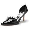 Лакированная кожа нюд, высокий каблук, светлый вырез, заостренный носок, тонкий каблук, жемчужное слово большого размера. — купить товар онлайн с бесплатной доставкой по всему миру!