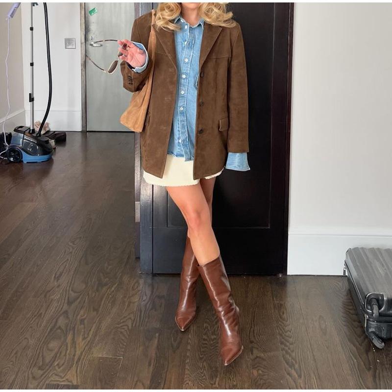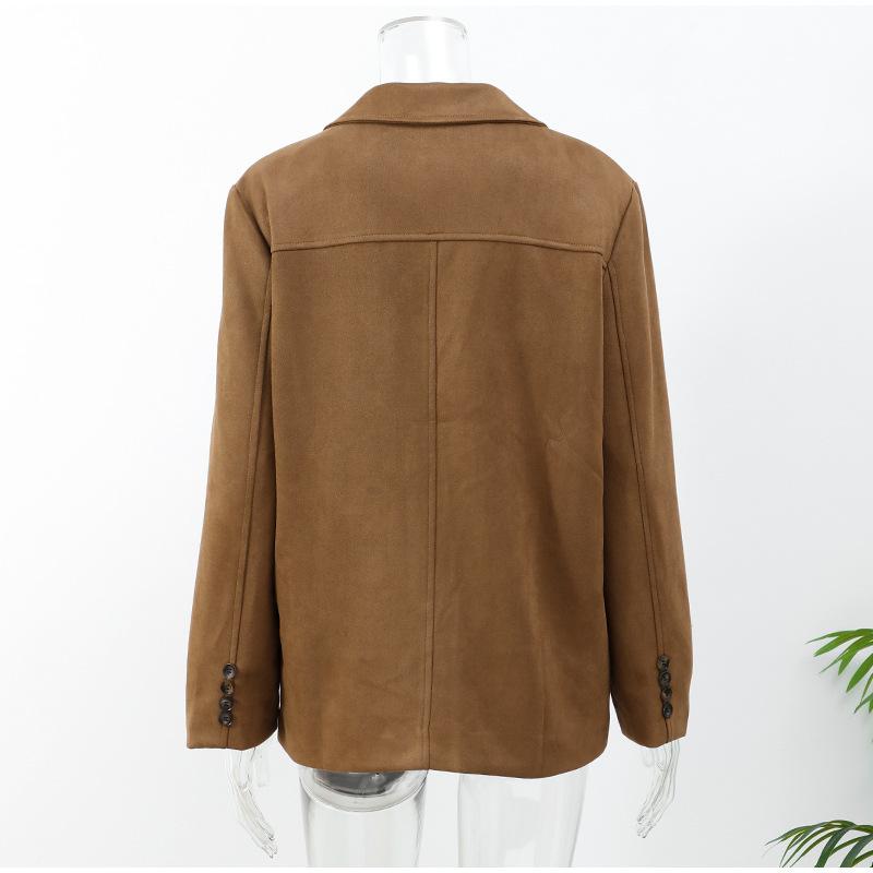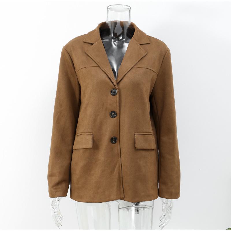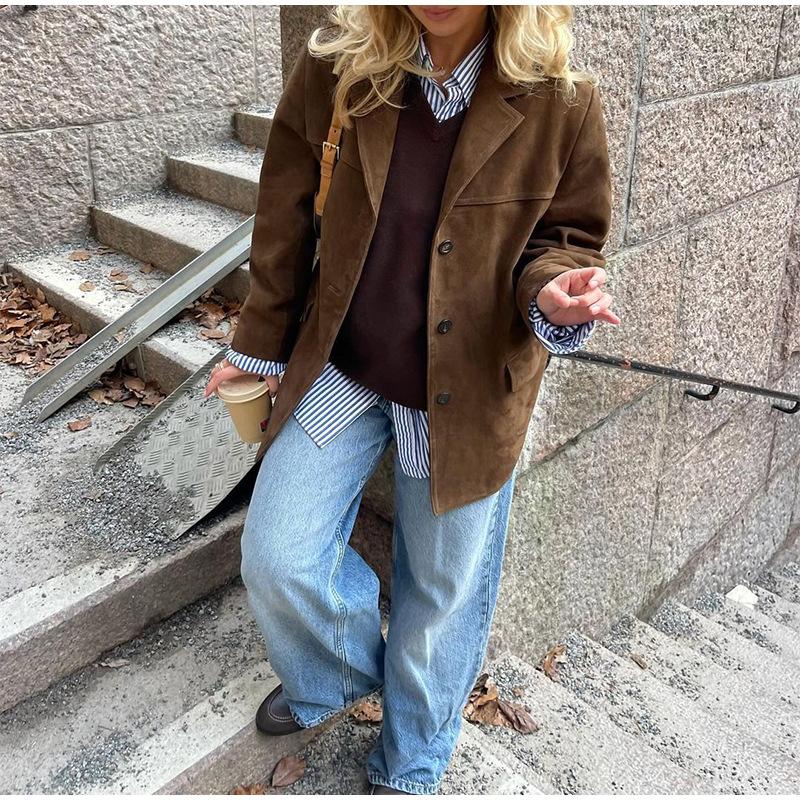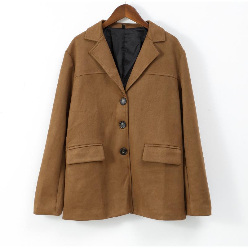 Коричневое пальто для женщин весна отложной воротник длинный рукав женская куртка 2025 мода свободное однобортное женское пальто