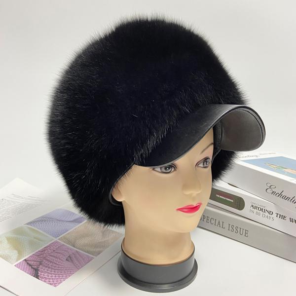 Шапка из натурального лисьего меха Женская Пушистая с козырьком Зимняя Теплая Снежная шапка Женская Уличная Русская шапка-ушанка Зимняя Женская Шапка из натурального меха