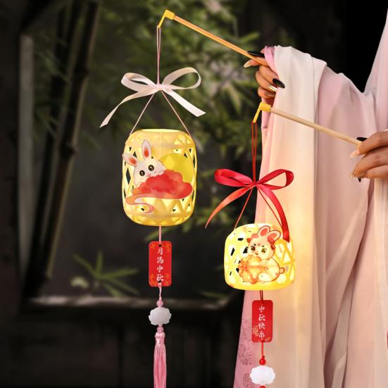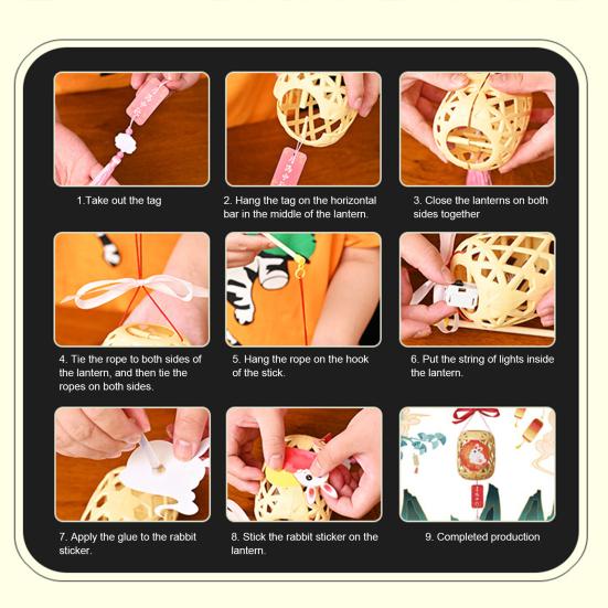 Традиционная элегантность: Внесите китайские традиции и современную эстетику с этим набором для изготовления фонарика своими руками с очаровательными мультяшными узорами кроликов.. Придайте праздничным событиям, таким как Праздник середины осени и Праздник весны, оттенок культурного очарования.