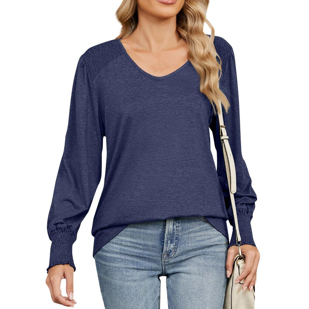 Женские топы рубашка с длинным рукавом V-образный вырез повседневная свободная футболка топы