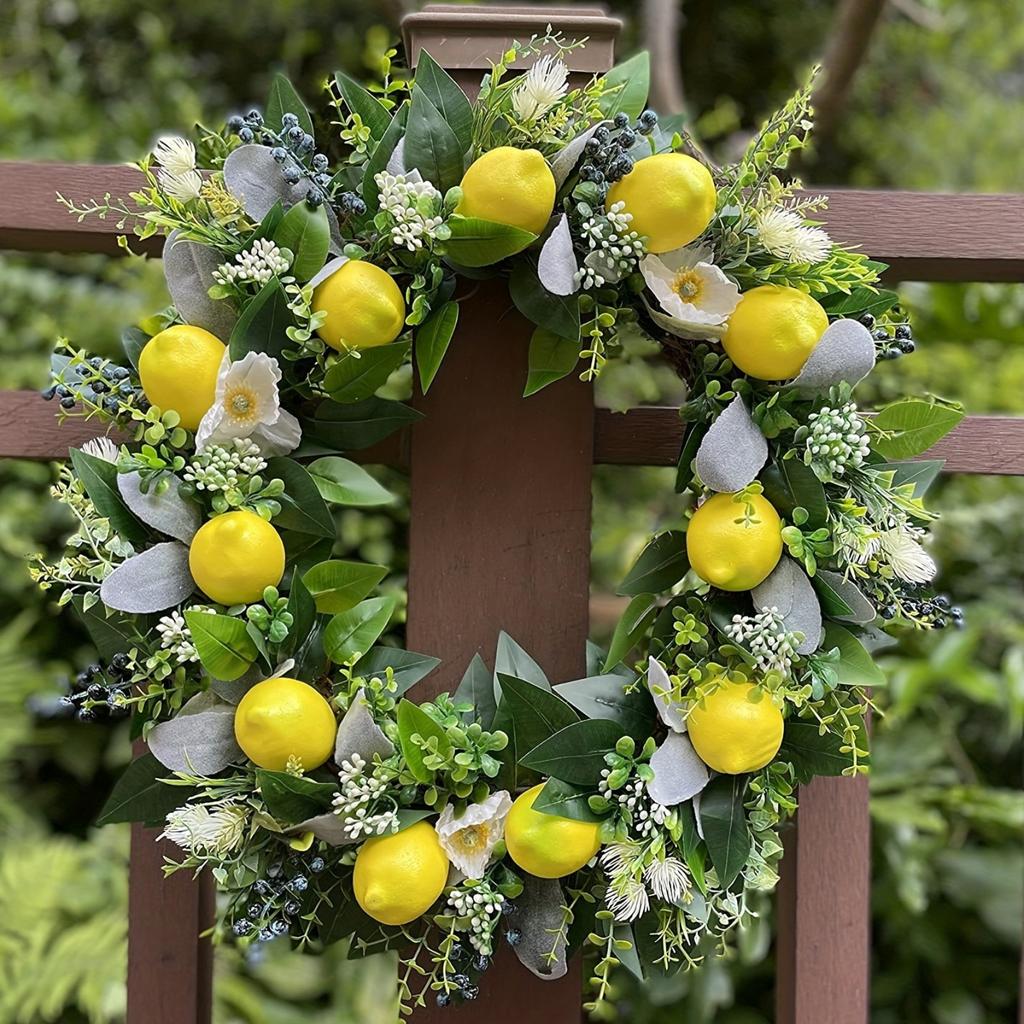 Summer Lemon Wreath Artificial Yellow Leafy Fruit Wreath